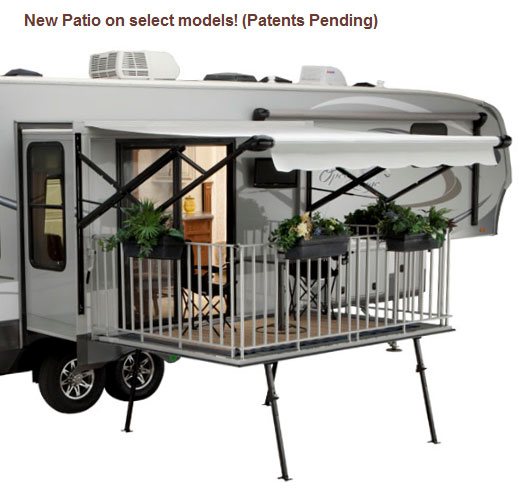 The Cool: A patio/deck on your RV? How cool would that be? The only one cooler that I've seen was the Veranda Motorhome in which you pushed a button and the entire slide out of the RV drops down into a deck. If I find pictures of that, then I'll post it here in the future.